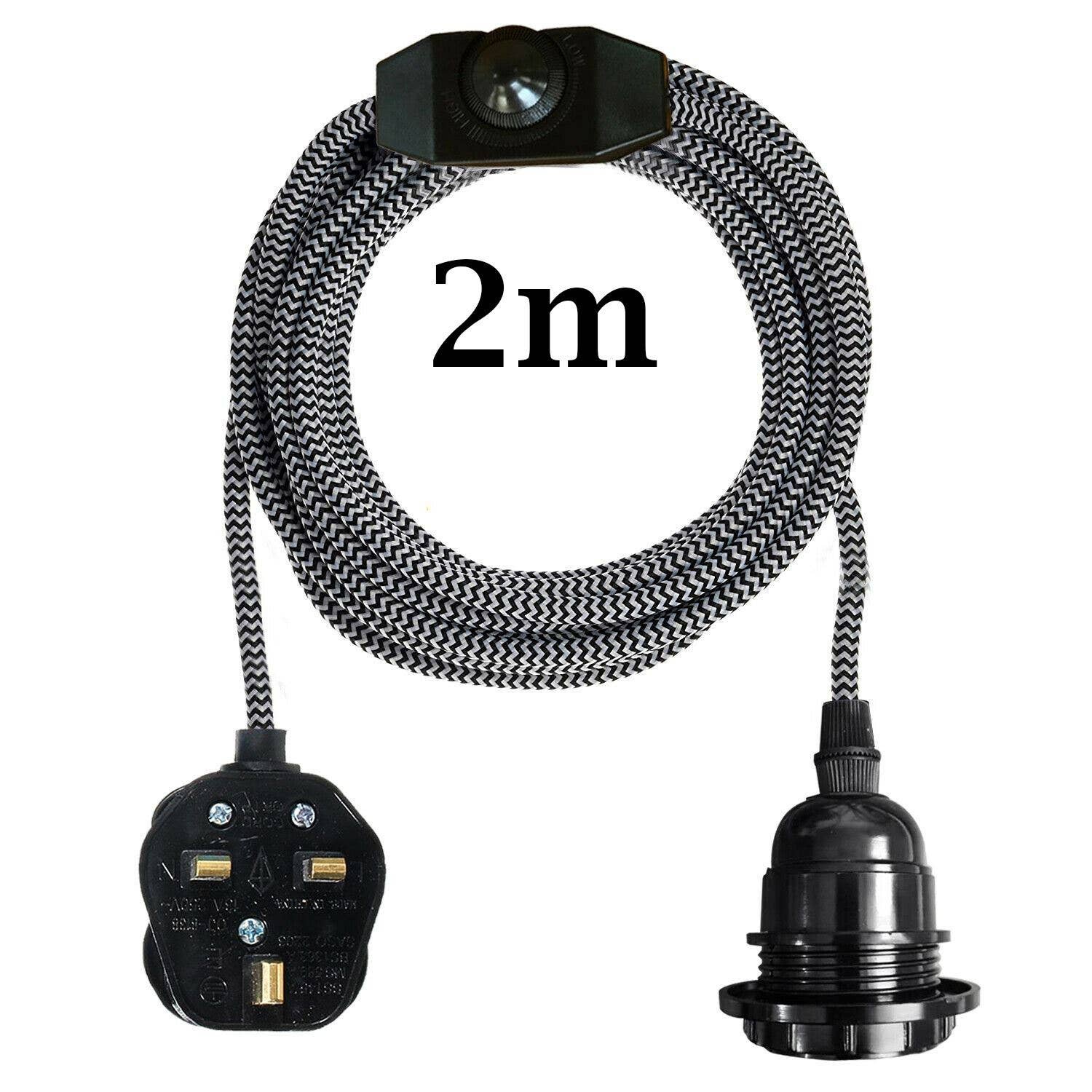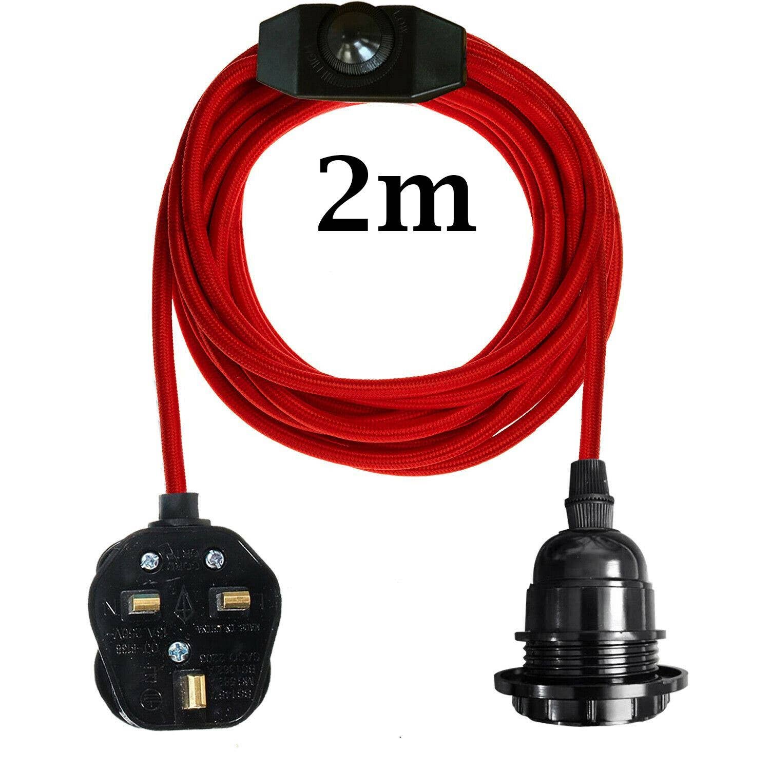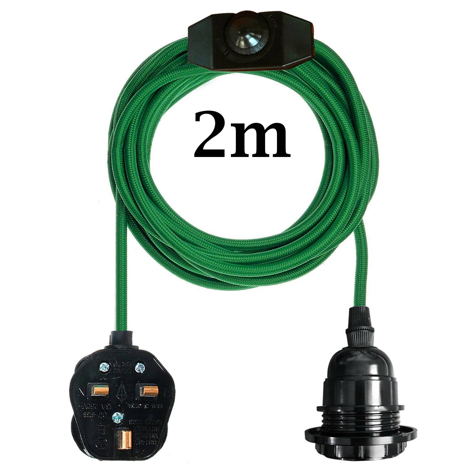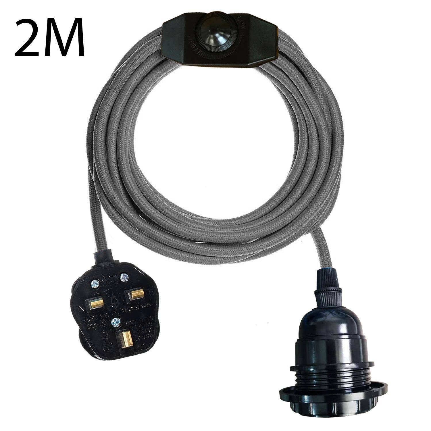2M Hemp Fabric Cable UK Plugin for Pendant / wall Lamp E27 fitting